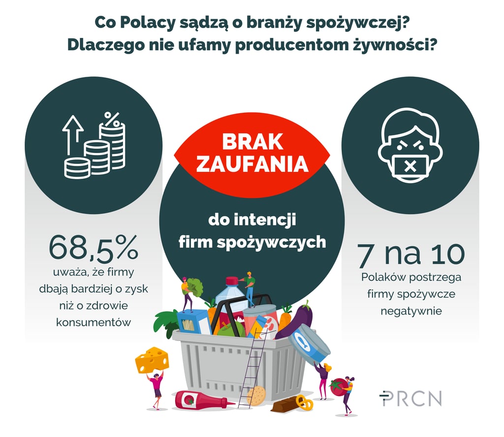 Ponad 68% Polaków uważa, że firmy spożywcze bardziej dbają o swoje zyski niż o zdrowie ludzi. Takie wnioski płyną z badania przeprowadzonego przez agencję PRCN i SW Research. Raport „Zaufanie do żywności – co myślą Polacy?” pokazuje, że aż 7 na 10 respondentów postrzega producentów żywności jako nastawionych przede wszystkim na zysk. Wnioski z badania podkreślają również rosnącą potrzebę przejrzystej i odpowiedzialnej komunikacji ze strony firm.